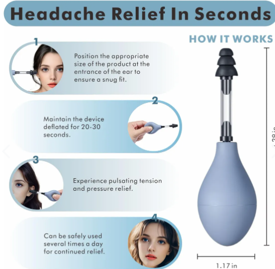 Herramienta diseñada para brindar alivio inmediato de la presión en los oídos mediante una suave estimulación con aire, ayudando a reducir molestias como zumbidos, mareo por movimiento y presión interna. Ofrece una solución natural y segura, sin necesidad de medicamentos ni procedimientos invasivos.