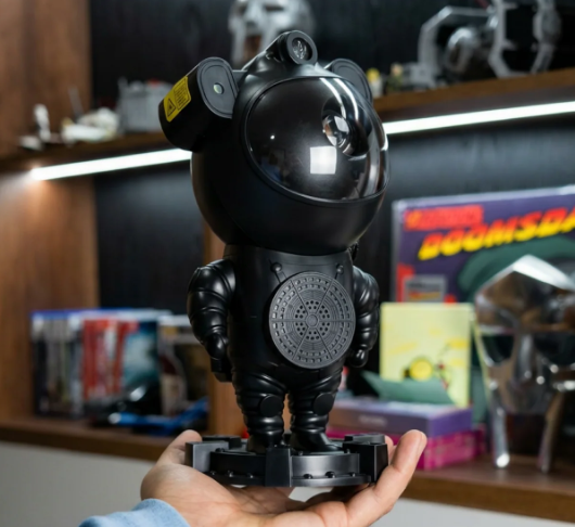 Este innovador proyector con diseño de astronauta no solo ilumina, sino que crea una experiencia envolvente con nebulosas dinámicas, estrellas en movimiento y sonido relajante gracias a su altavoz Bluetooth integrado.