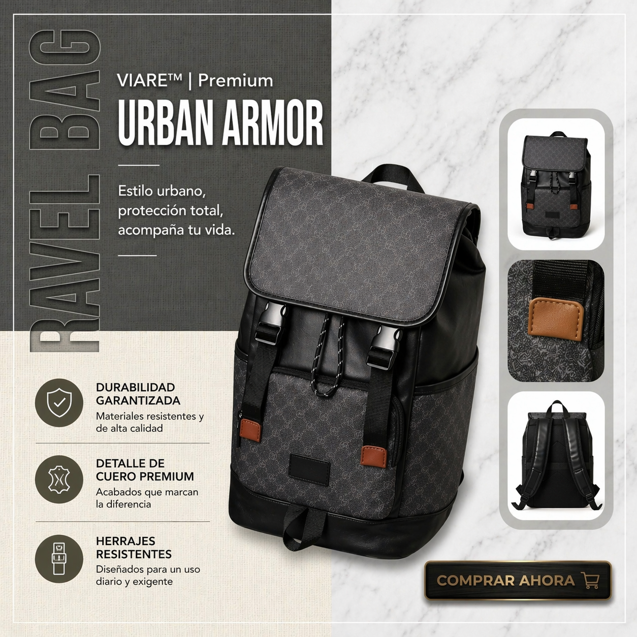 Descubre la combinación perfecta entre diseño moderno y practicidad con esta mochila urbana de estilo minimalista. Pensada para quienes se mueven entre la ciudad, el trabajo y el ocio, esta pieza destaca por su estética elegante en tonos negros con acabado texturizado y detalles contemporáneos.