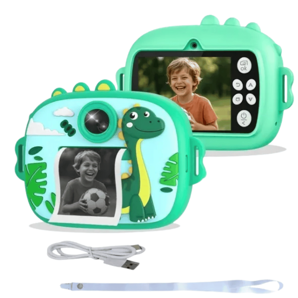 Cámara infantil diseñada para capturar y imprimir momentos de forma divertida e inmediata. Su sistema de impresión instantánea permite a los niños obtener sus fotos al instante, fomentando la creatividad y el entretenimiento en cada uso.