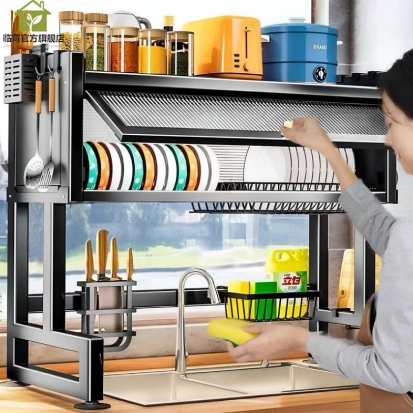 - Desmontable y fácil de limpiar. - Alta resistencia y durabilidad. - Gran capacidad para optimizar espacio. - Escurridor de cubiertos removible. - Diseño extraíble para limpieza sencilla. - Accesorios fácilmente removibles para mantenimiento. - Almohadillas antideslizantes en la base de las patas para estabilidad. - Incluye todas las piezas e instrucciones necesarias. CAJA: - Largo: 81 cm. - Alto: 15 cm. - Ancho: 32,5 cm. PRODUCTO: - Alto: 78,5 cm. - Ancho: 65 cm. - Fondo: parte superior 28,5 cm, parte inferior 29,5 cm.