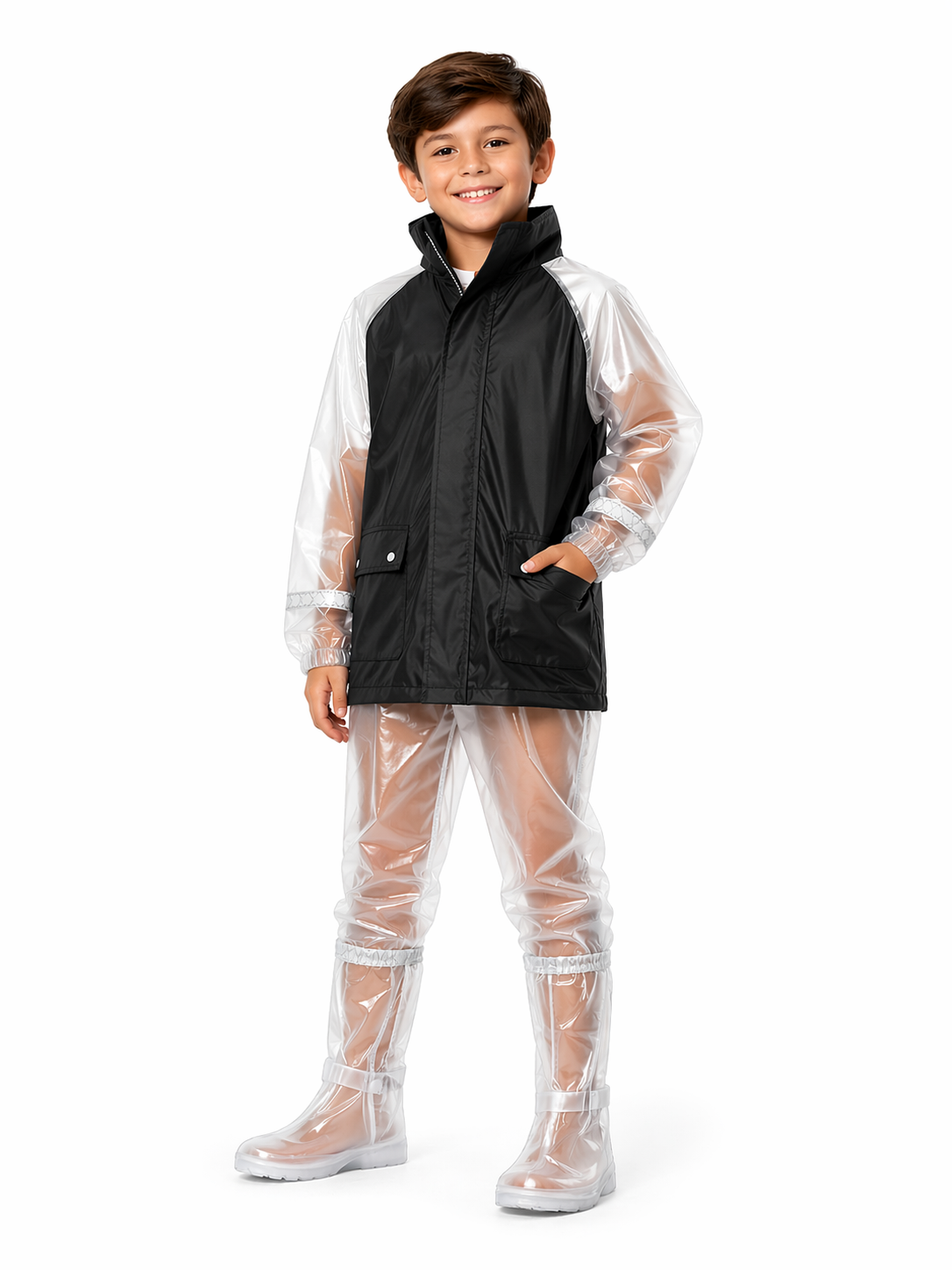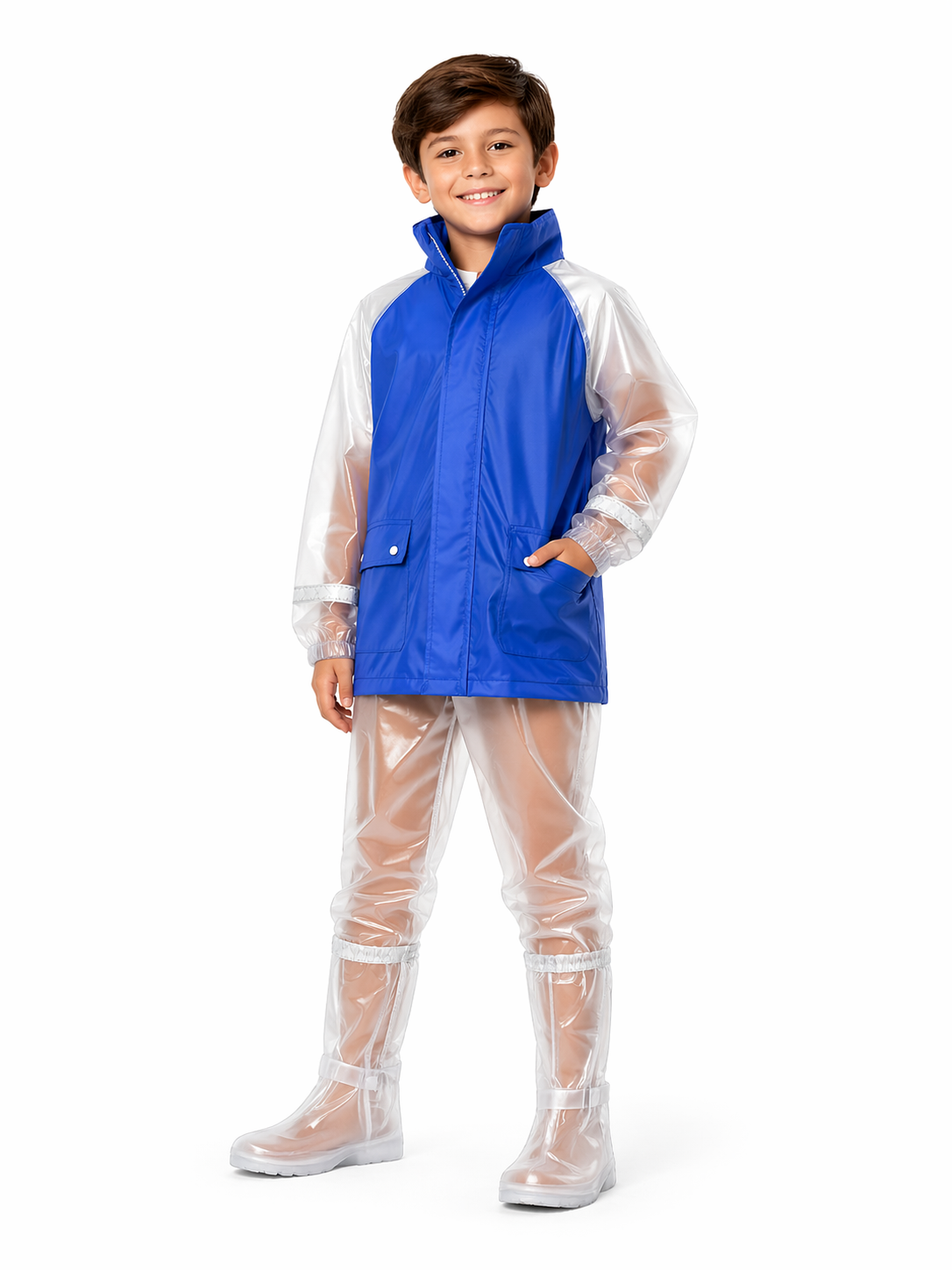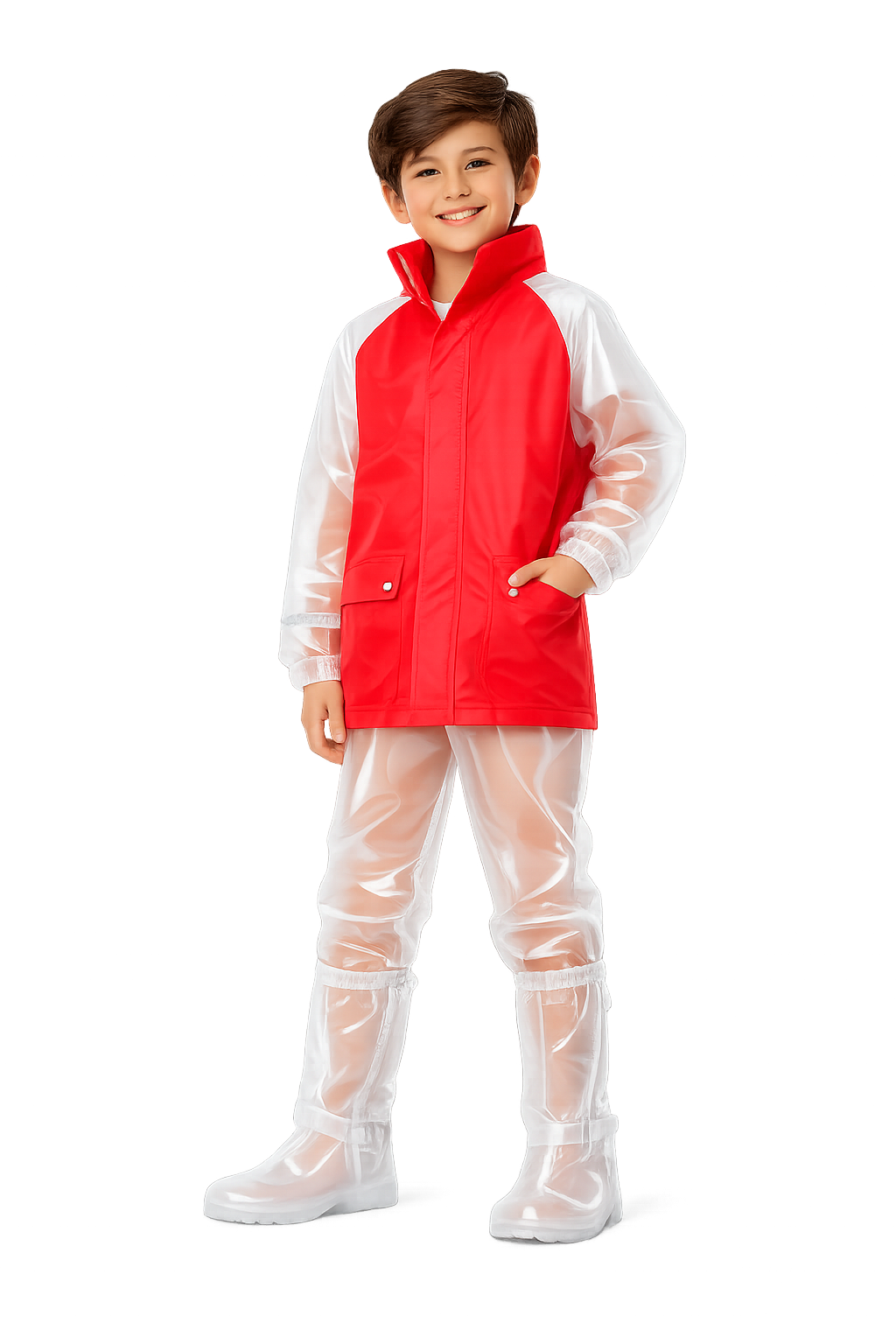 Impermeable infantil tipo traje diseñado para brindar protección total contra la lluvia en trayectos diarios, paseos o viajes en moto. Su diseño de dos piezas ofrece cobertura completa del cuerpo, manteniendo a los niños secos, cómodos y visibles incluso en condiciones climáticas exigentes.