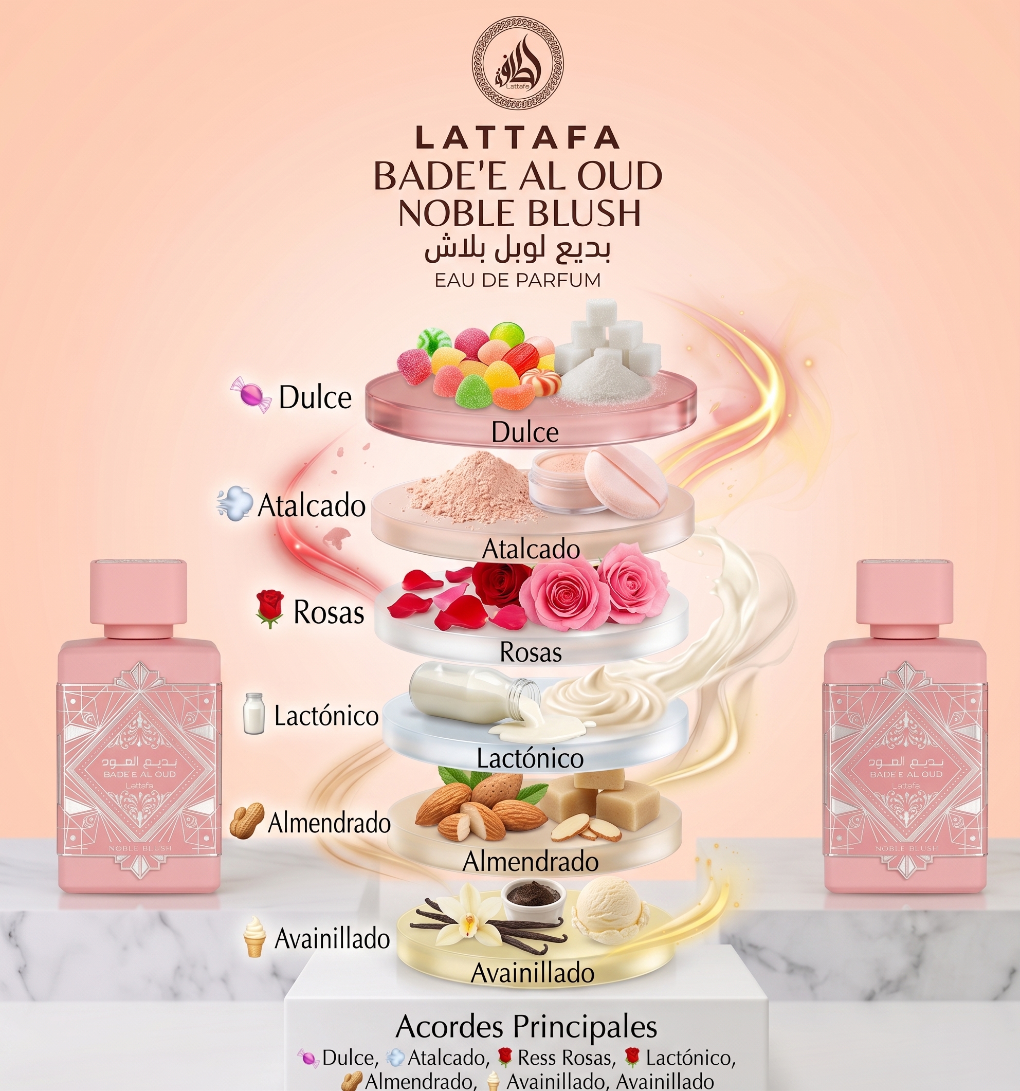 En el fondo destacan acordes lactónicos, almendrados y avainillados que crean un aroma cremoso, suave y muy adictivo.