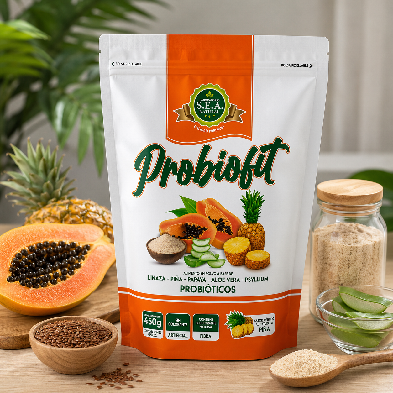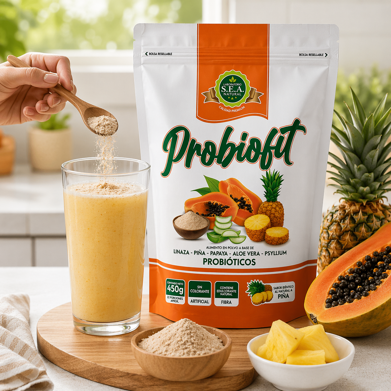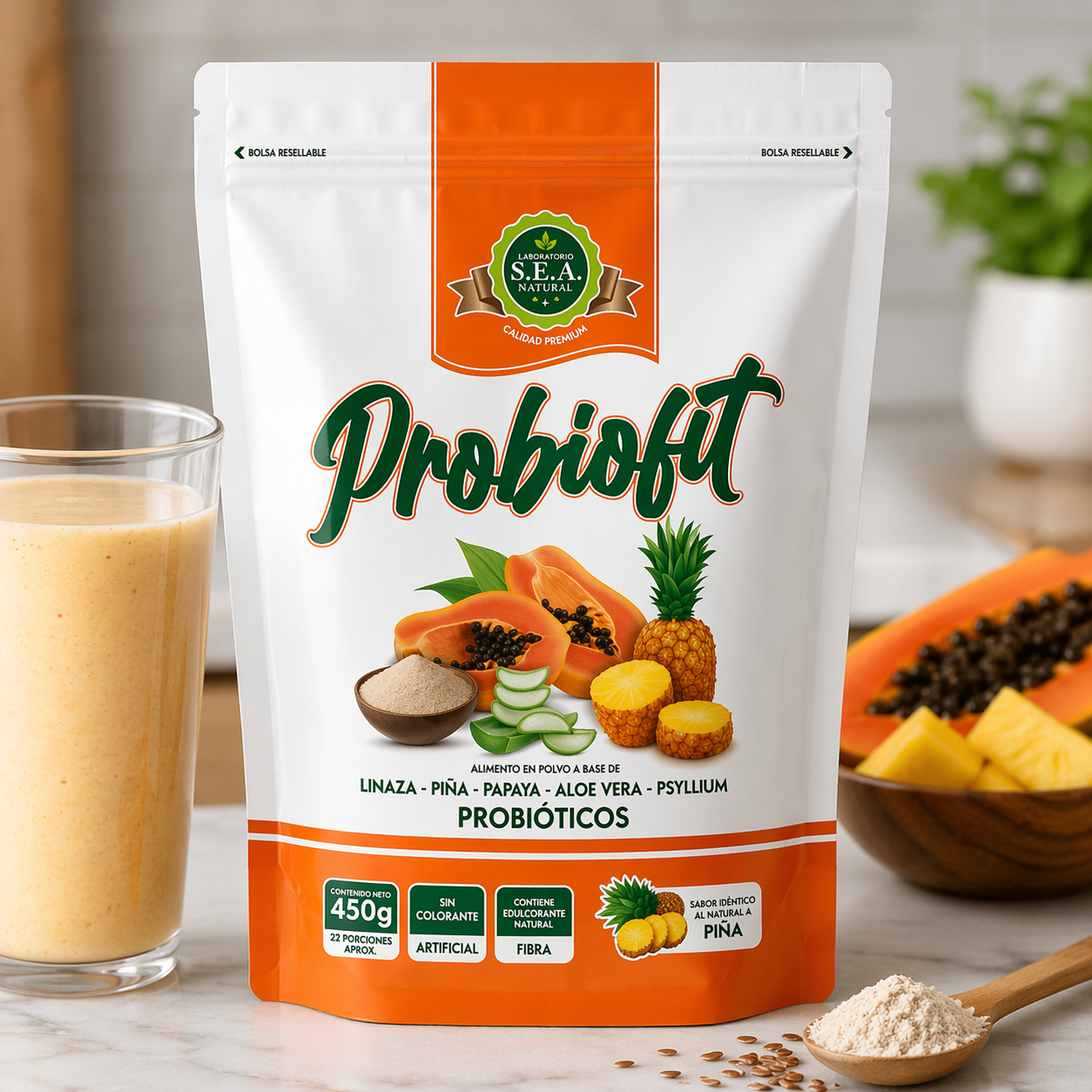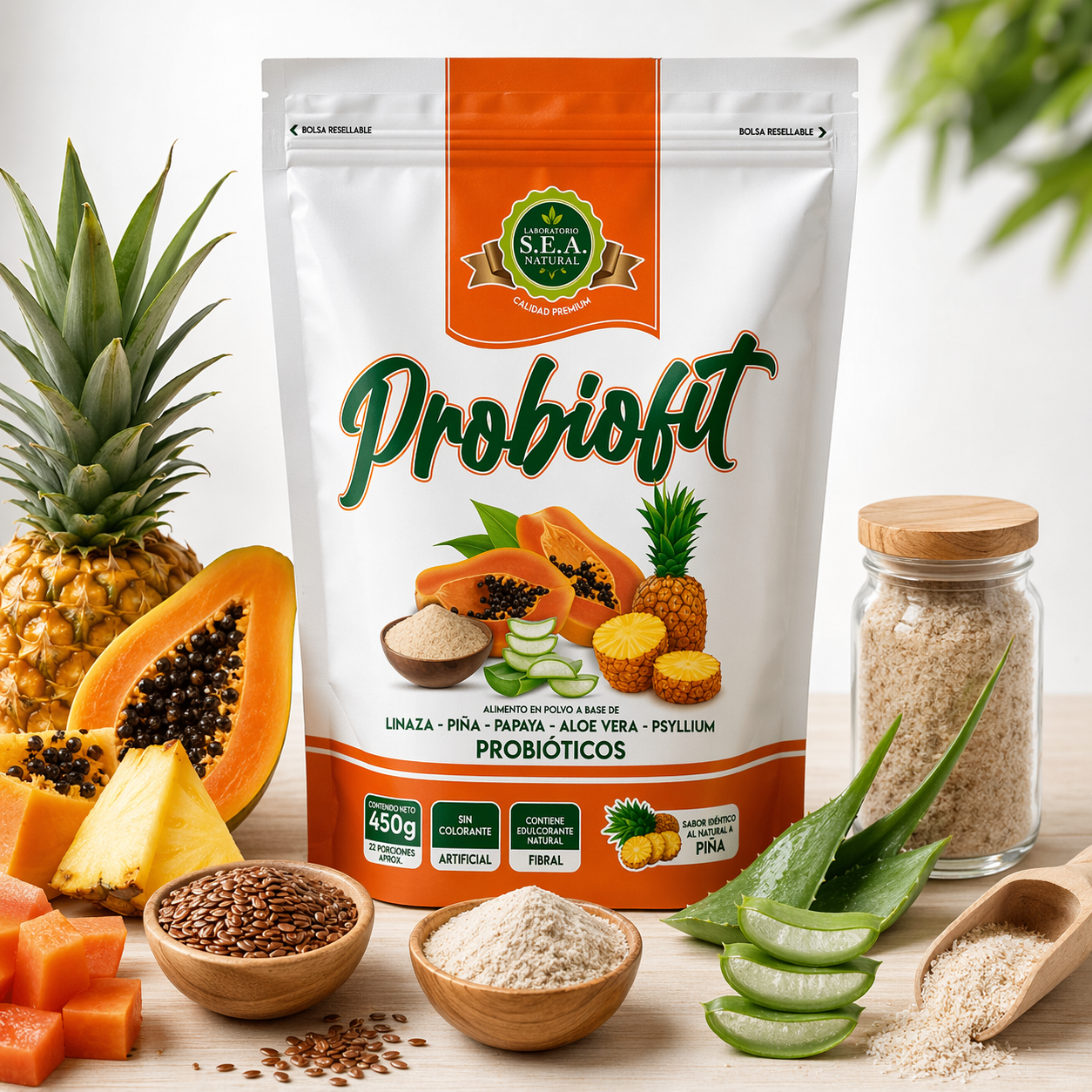 Probiofit es un alimento en polvo con linaza, psyllium, piña, papaya, aloe vera y probióticos. Su fórmula combina ingredientes de origen vegetal y atributos muy valorados por compradores que buscan opciones prácticas para su rutina diaria.