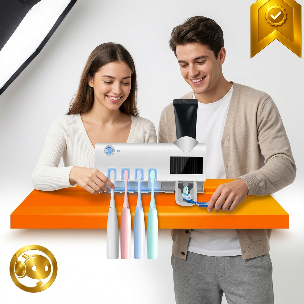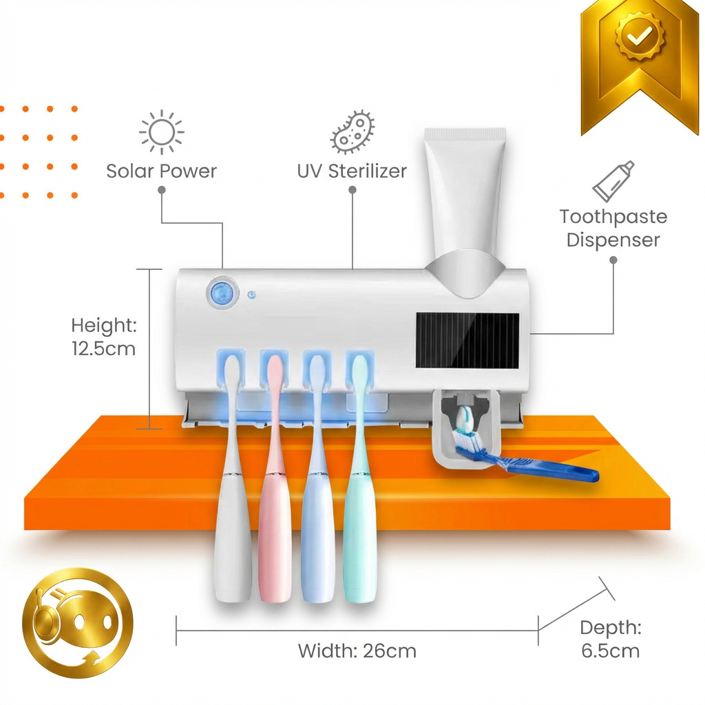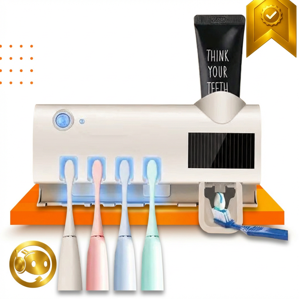 2. Especificaciones técnicas: Tecnología de esterilización UV; elimina hasta el 99,9% de bacterias en las cerdas; diseño compacto para baño; no incluye dispensador de pasta de dientes; condición: nuevo; presentación: kit x 1 unidad.